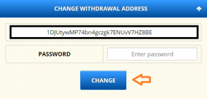 Una vez ahí, es tan simple como indicar la dirección de nuestro monedero favorito, poner la contraseña de FreeBitcoin.in y finalmente, pulsar el botón «Change».